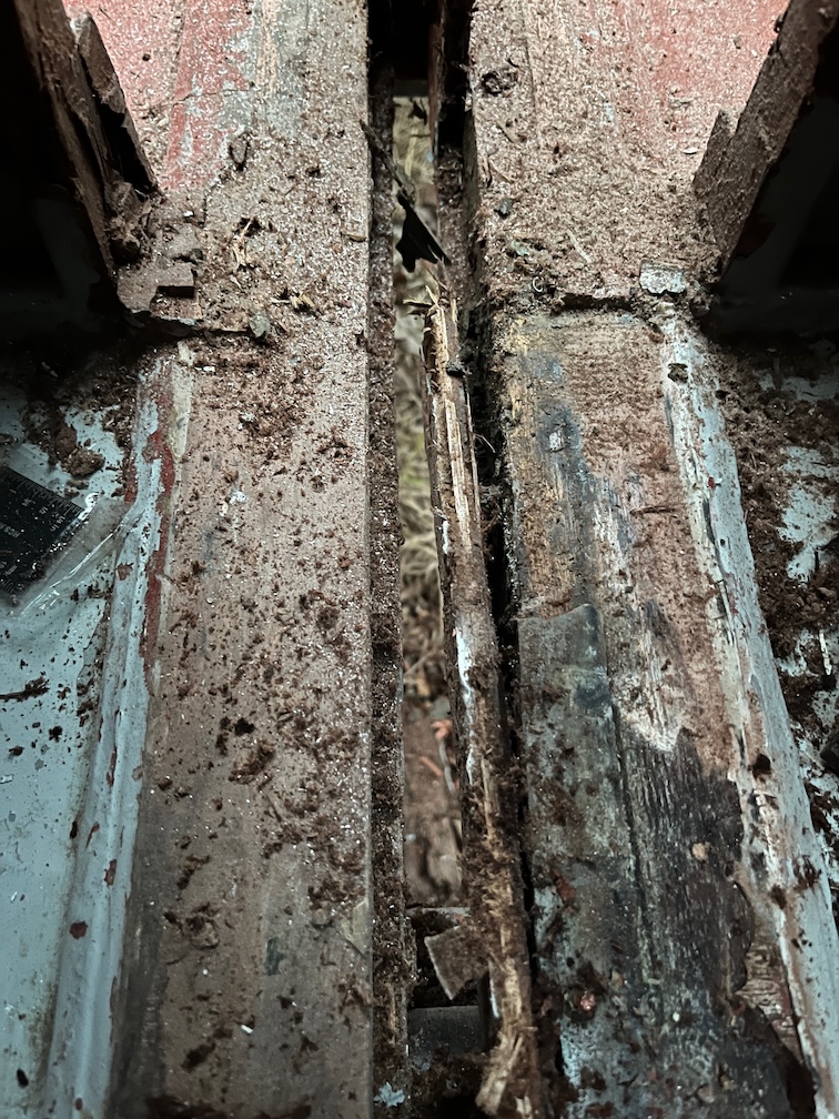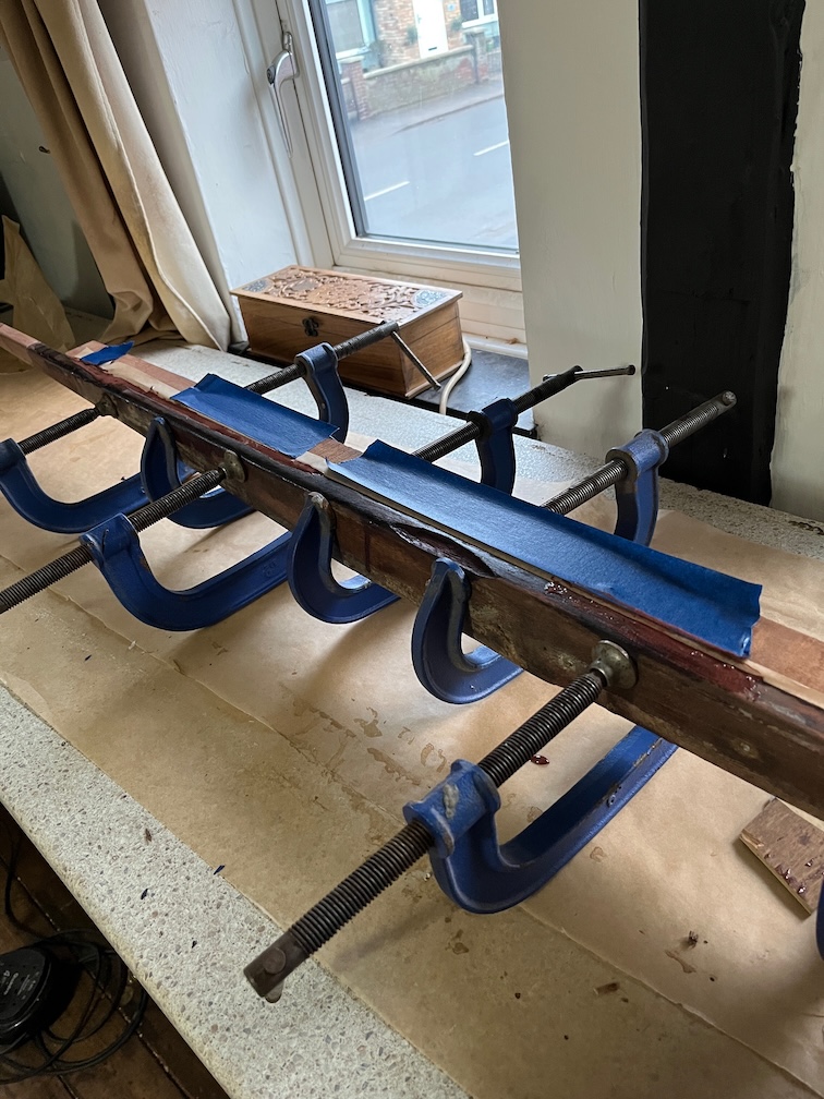 This involved cleaning up the forward end of the slot as a fair bit of glue and original plywood remained at the bottom of the slot forming a lump that prevented the new side from fitting down into the slot correctly. There still remains some glue to be removed but the big lump had to go first.