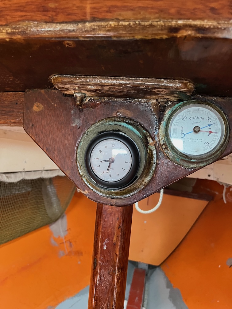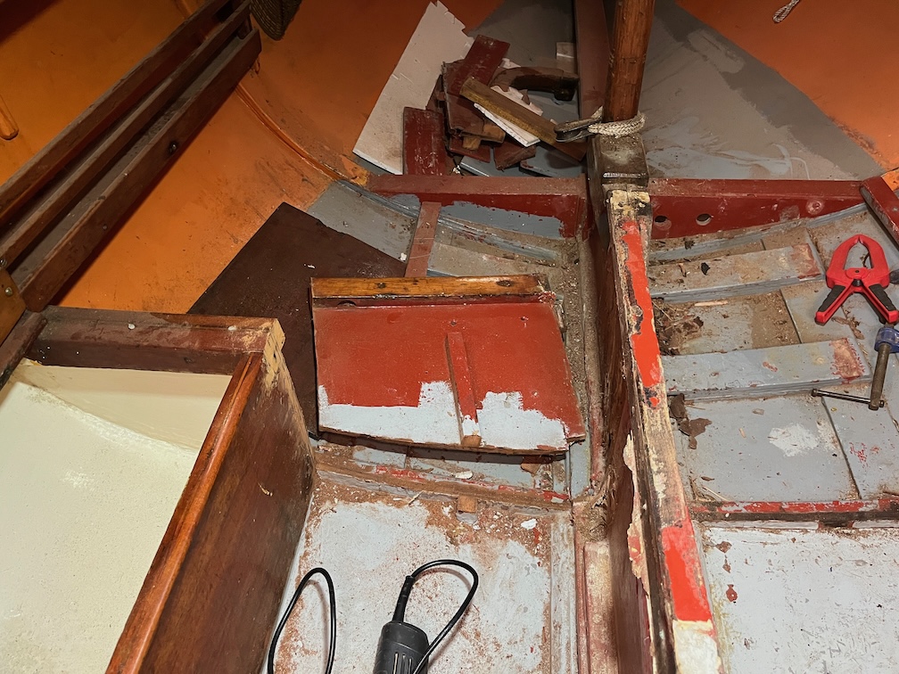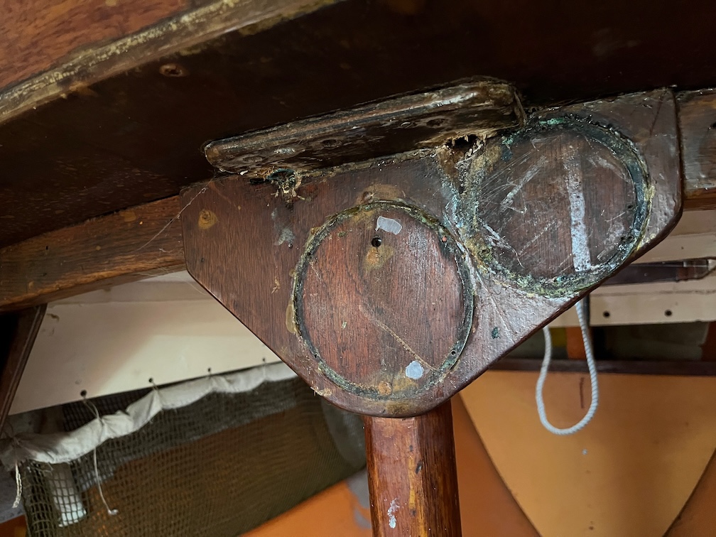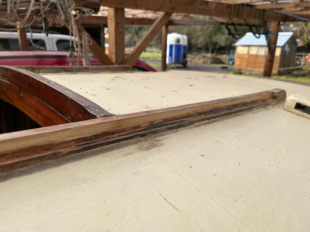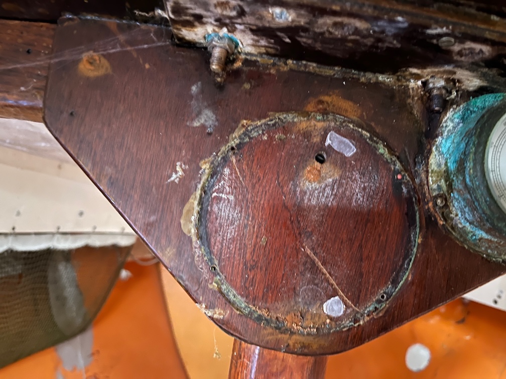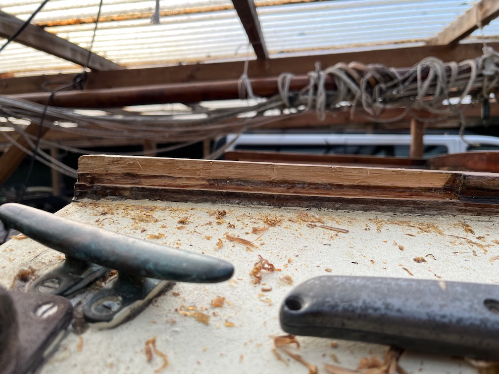This is the starboard side cleaned up and from the cockpit, but you can see that the wood is a dark brown and I noted in the post at the time that it was wet.