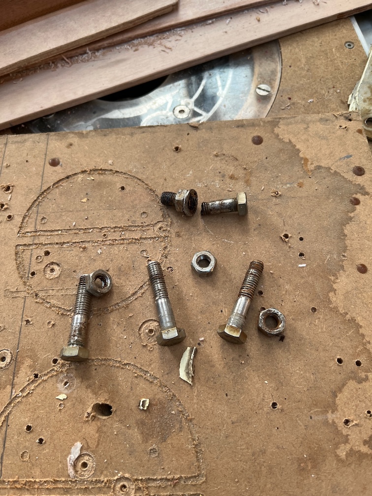 The uppermost runner was a bit more difficult than the starboard side as there are more screws holding the it to the lower runner and they are a little more deeply set making them not so easy to spot. The quickest way is to run the multi-tool blade under the uppermost runner, cutting in about 10 mm along the glue line, and note where is doesn’t cut into the wood. A chisel is used to remove the wood around this spot revealing the screw which is then removed.