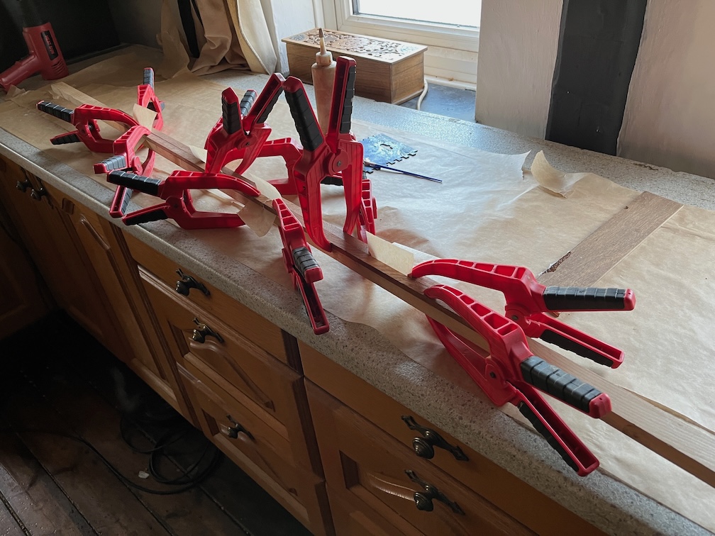 I shall also use the new heater to warm the cabin up with warm/hot air and block the companionway hatch so that the only way out for the warm air is under the bridge deck and into the cockpit and through the slot in the keel. This will help dry out the wet sections of the keel and aft block in preparation for the new case sides to be glued in place.