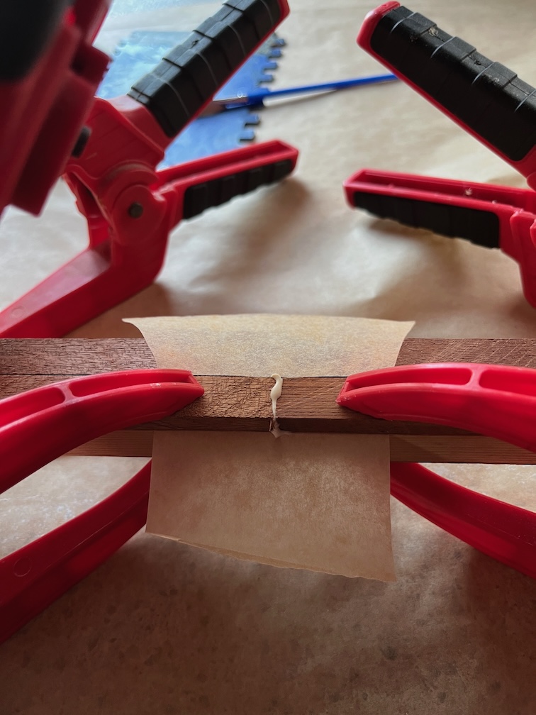 I mixed up 30ml of Clear Penetrating Epoxy Sealer (CPES) and flooded the damaged surface of the runner until the sealer stopped being readily absorbed. The sanded areas absorbed the sealer like a sponge and sat on the surface of the rest of the wood, soaking in slowly. After a few applications the damaged areas stopped soaking up the sealer quickly and I left the runner on the baking paper to left the remaining sealer soak in as much as possible.