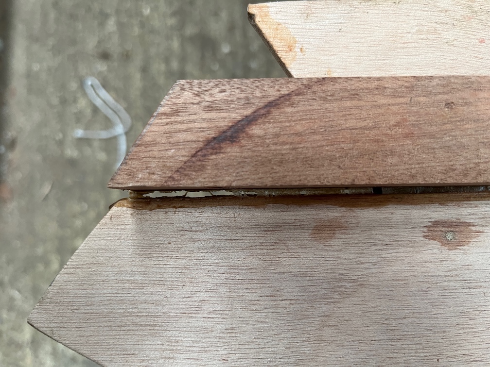 Fortunately, the glue had not started to set, so I hastily removed the screws, cleaned the clue (water soluble whilst still liquid) and put it on the other way around.