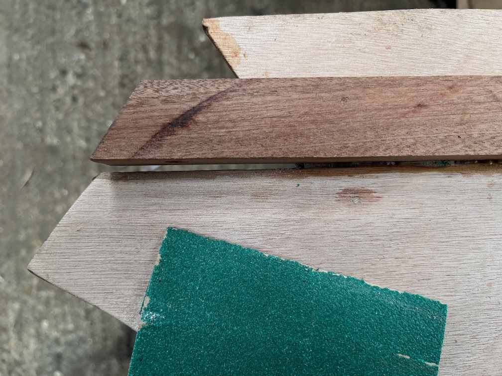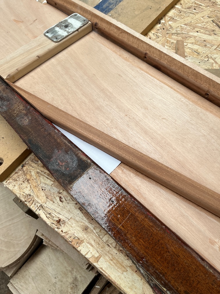 Unfortunately, the runner sprung slightly when I removed the cramps and I’ll have to do two things to rectify this. Firstly this gap needs to be cleaned out and filled and secondly, the runner will need to be trimmed on the bottom to compensate.