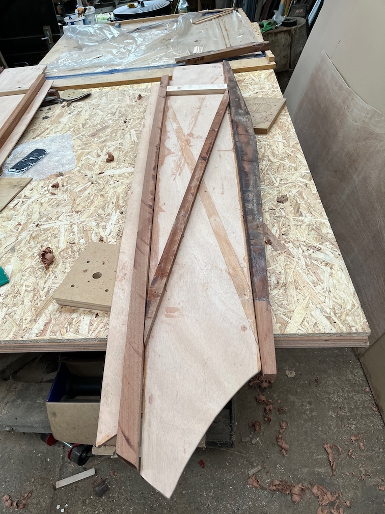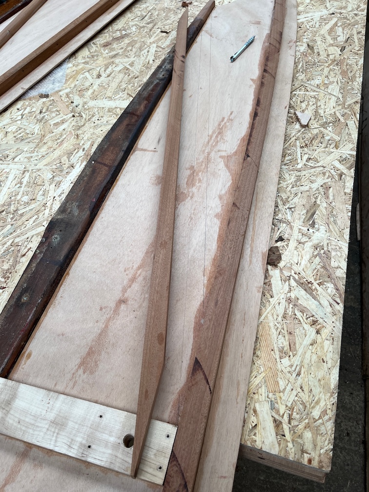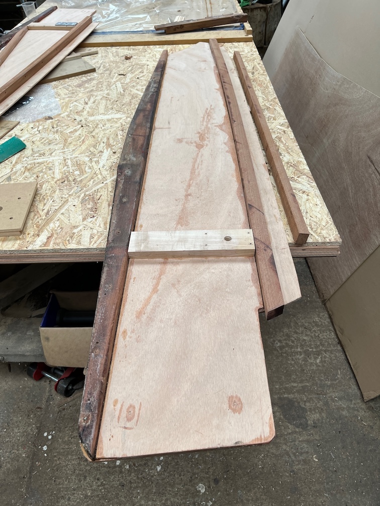 Here is the result and you can see where the brace was before. I’ll have to put epoxy in the screw holes to fill them up but I have to do that for the pivot bolt hole and the sprung section I referred to earlier. Once the side is installed into the boat and painted you probably will not notice the error. At least I hope so.