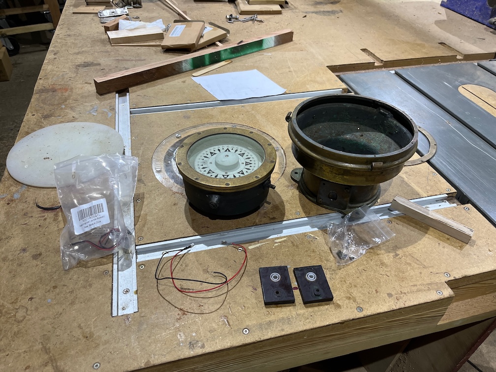 So, the compass is done and now needs to be installed into the cockpit. But, since I get into and out of the boat on the starboard side, putting the compass in now would be right in the way, so I’ll put it aside somewhere safe and install it closer to the launch day.