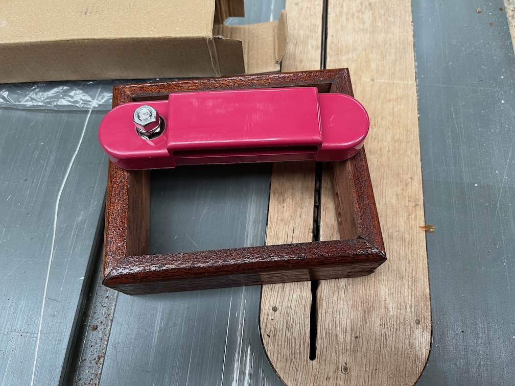 It is, however, November (already) and staining and varnishing in the workshop is a long process due to the extended drying time. So, I’ve been staining in the workshop and bringing the pieces into the kitchen where they are placed on the Rayburn to dry. Once the staining was completed, both pieces were taken into the workroom where the varnishing is done. Here the procedure is to apply a coat of varnish all round, using screws as standoffs and once the varnish has cured a little, the work pieces are returned to the Rayburn to complete the curing. Even so, it is a laborious process especially since the next part, adjusting the wiring, cannot be carried out without the controller and switch box mounted.