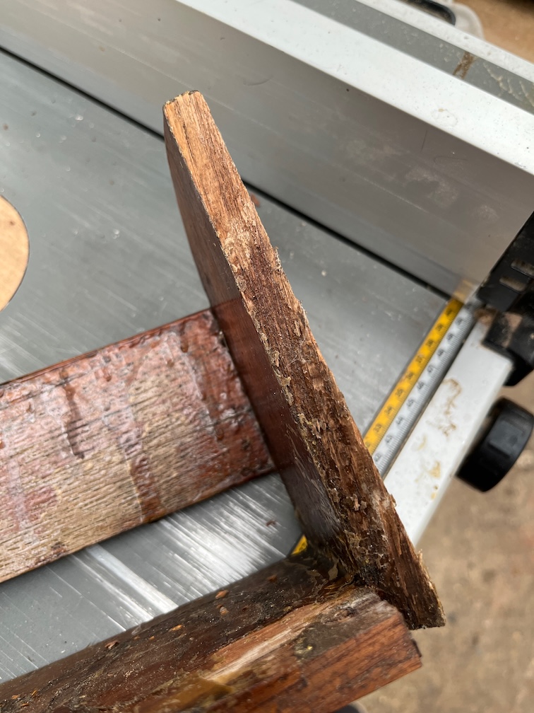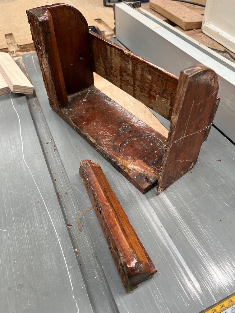Unfortunately, it broke whilst being removed and this is where Charles’ multiple layers of varnish come in. You see, there’s nothing holding the rack to the upstand except dried varnish. There are holes for screws to be put in from the inside, but no screws. Just varnish.
