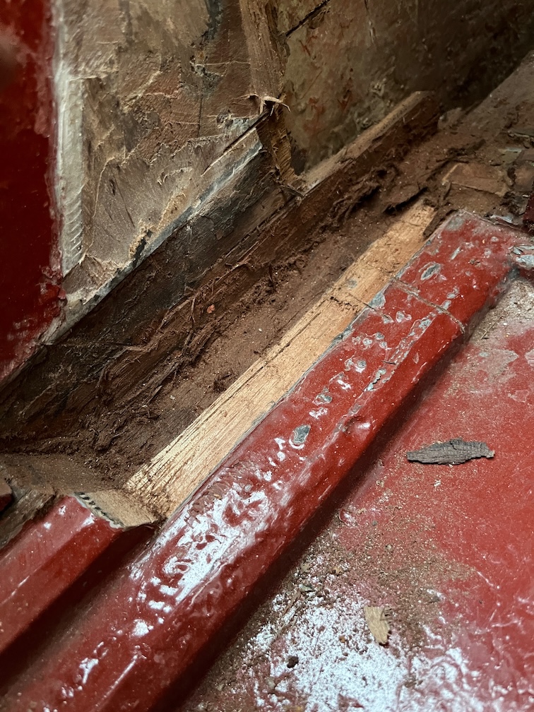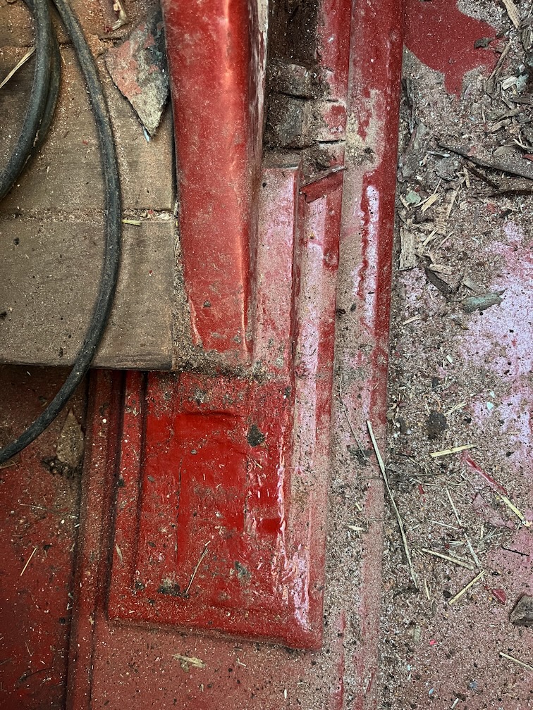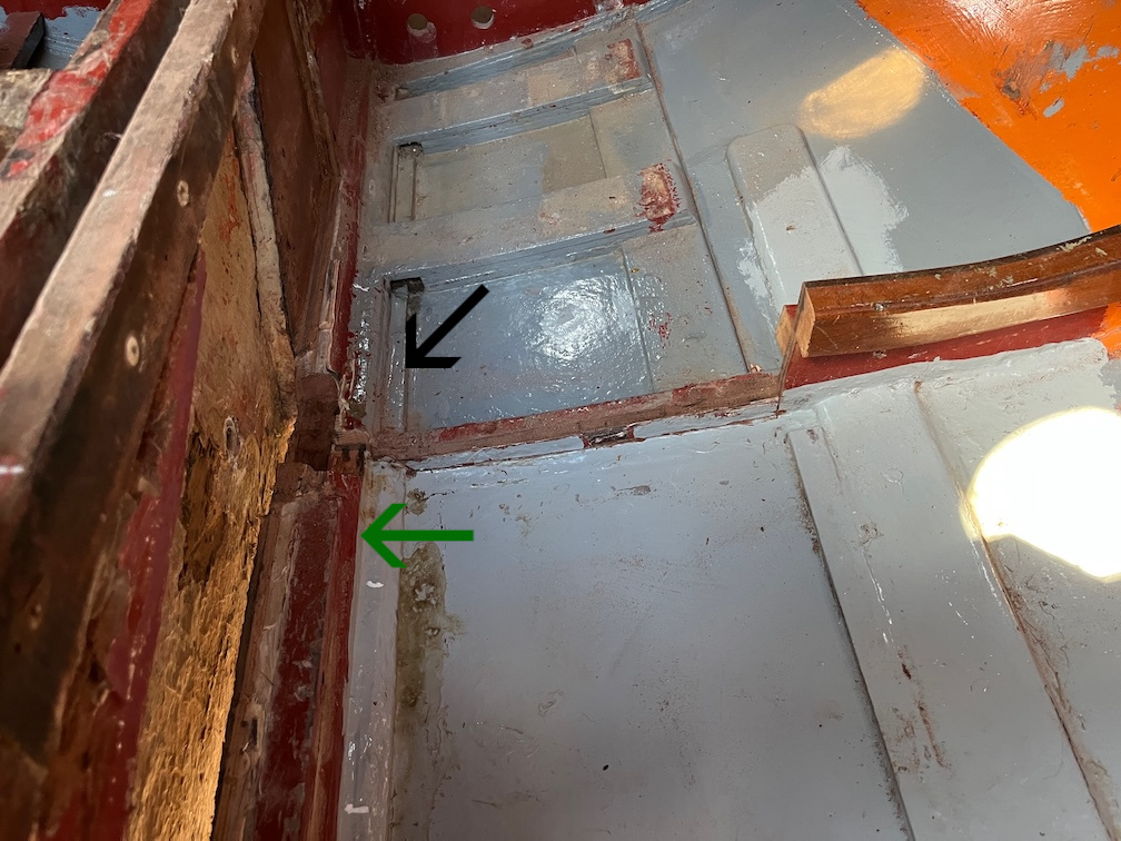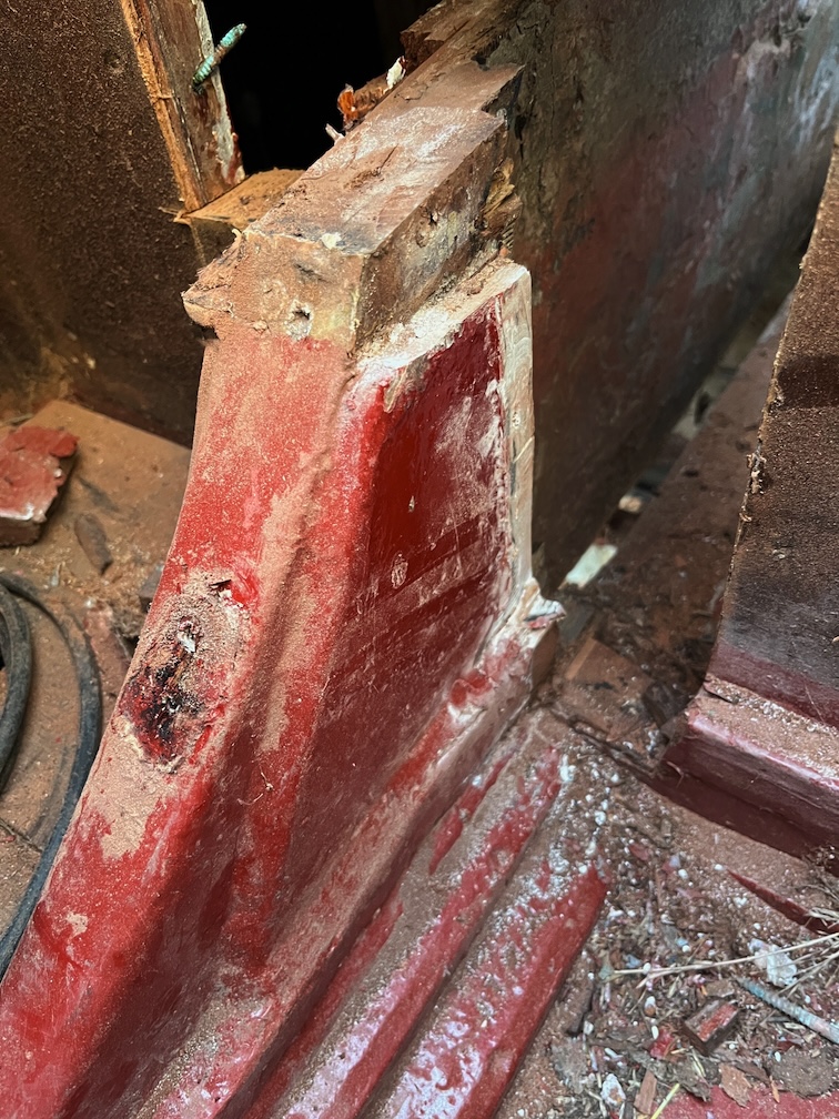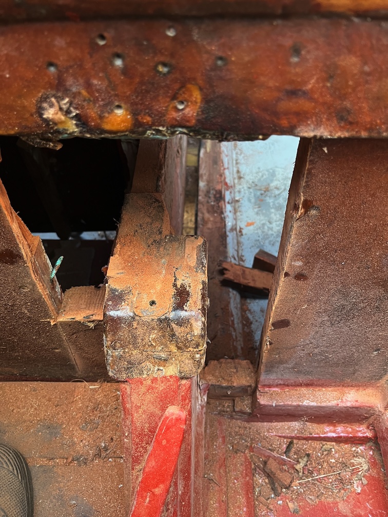 Then it was more work on the sides. This lump is the plywood added by Charles and has to come off.