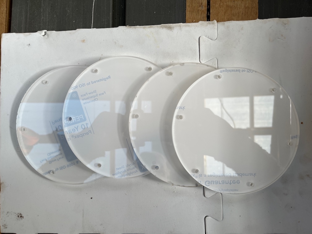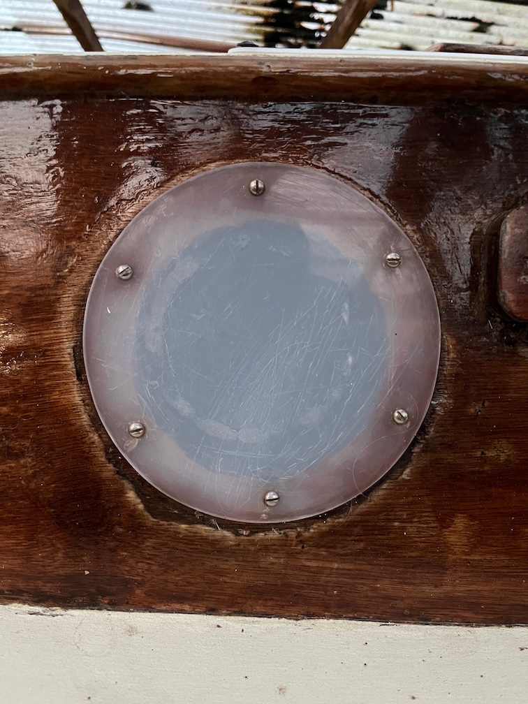 Remove the screws. Notice that the old light doesn’t fall down as there is some sealant between the perspex and the cabin side.
