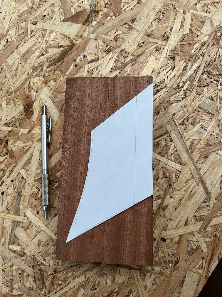 To prevent more cutting that necessary I aligned the straight front edge of the paper template with the edge of the workpiece.