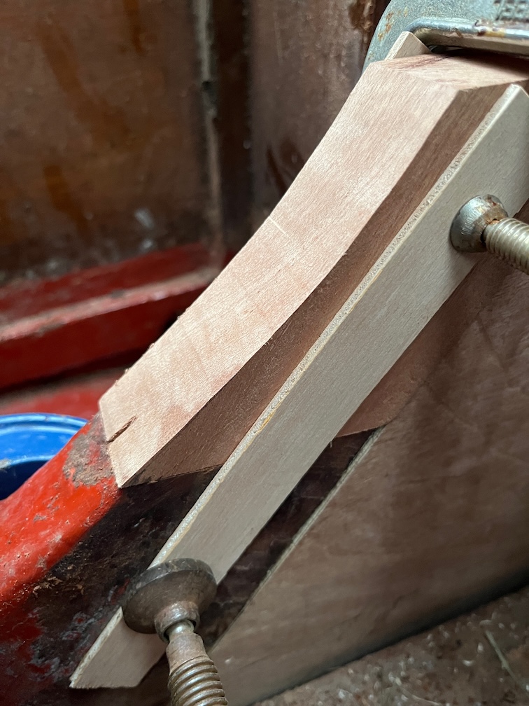 Then a straight cut at the back to get closer to the line made on the bandsaw (carefully).