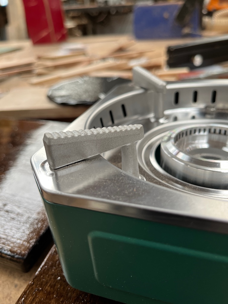 There are three problems with it. Firstly, it takes a bit longer to start cooking since you have to heat up the spreader first. Secondly, it gets hot enough to scorch wood so you need to leave it on the stove until it is cool. Thirdly, the handle, which you take off when using the spreader, gets hot very quickly when you put it into the spreader to lift it off the stove, hand burning hot. I’ll see if I can make some kind of heat resistant covering for the handle.
