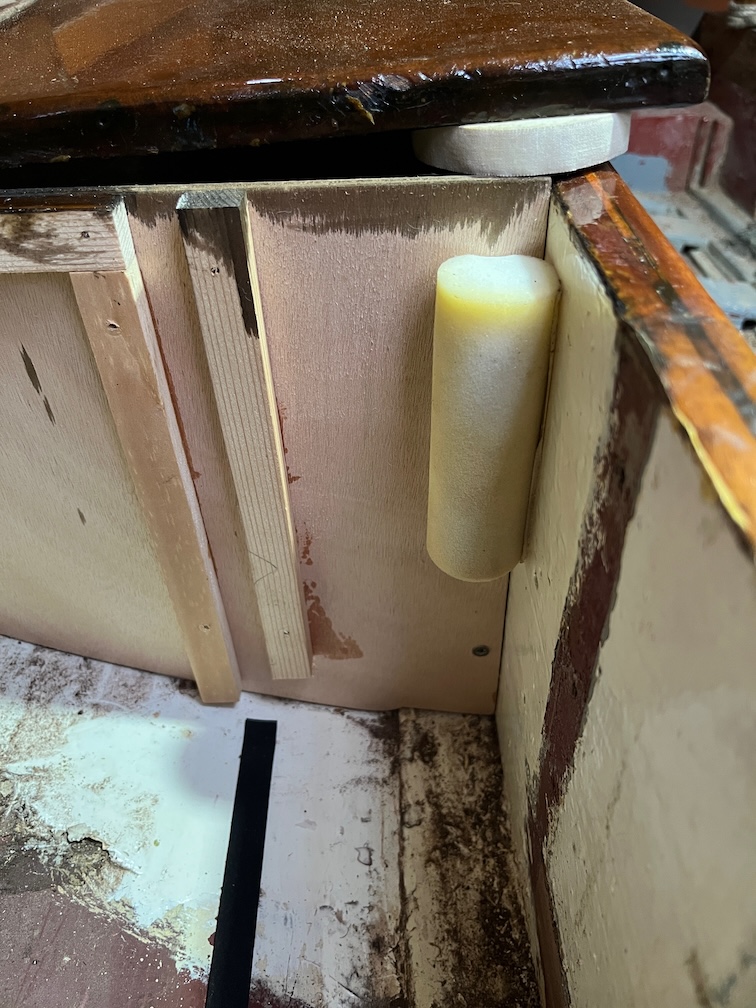 To complete the galley stove locker I put in place some chafe and clink prevention.
