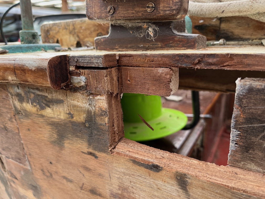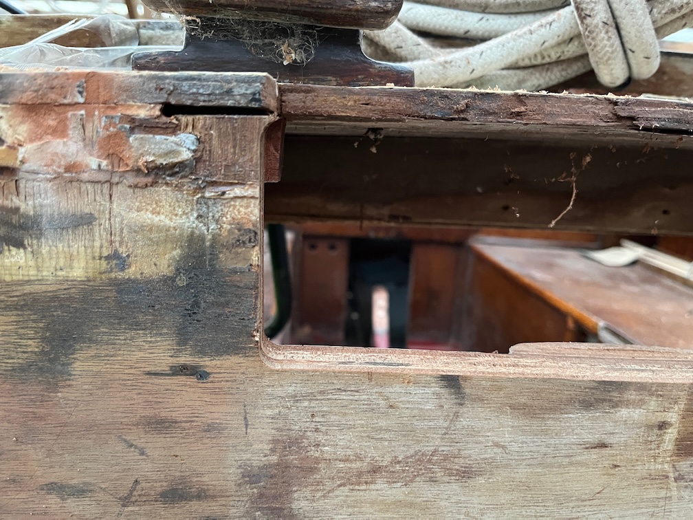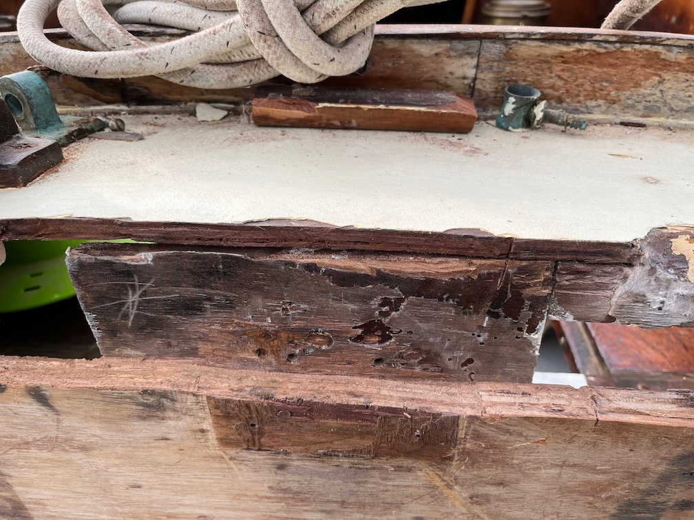 So, that part of the transom has to be replaced and the reason for that is that if nothing was done and the top part of the rudder broke away from the transom due to the rot behind it, you would be unable to control the boat and that is a safety issue.