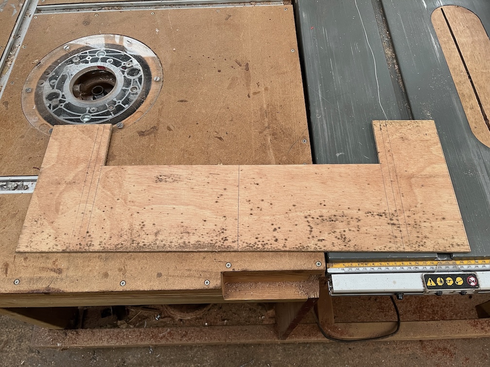This is a slightly better view. I checked with a piece of plywood and the two outer cuts are about as perfect as I’m going to get. The inner cut is 1mm deeper than the plywood as three layers of 6mm is 18mm and the original transom is 19 mm so there always was going to be a discrepancy, but I can live with that.