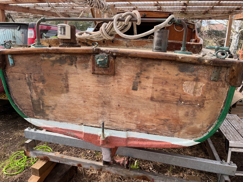 I will not be putting this fitting back. If you look in the phot prior to the one above, you can just see a groove in the rubbing strake where the uphaul has worn into the wood over the years.