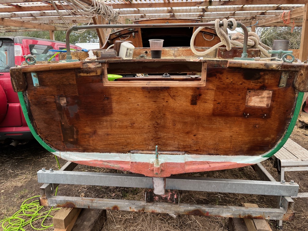 Hence the template. I’ll also use this template to replace the timber on the transom that is under the aft deck on the inside. This was originally a single piece, I think, but has been cut away in sections over the years. Now that the aft lockers have been removed, there is no need for the timber to be in pieces, so I’ll do the same, laminate a new timber as part of the transom repair next time.