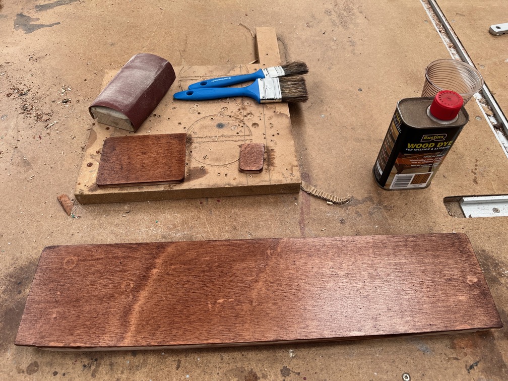 The reason for staining all these before gluing in the repairs is that if you glue first and then stain, unless you are ultra careful not to get glue or epoxy on the wood you will find that the glue stops the stain from soaking into the wood fibres and you get blotchy bits. Doing it this way prevents that and the glue does not have any problems being applied after the stain.