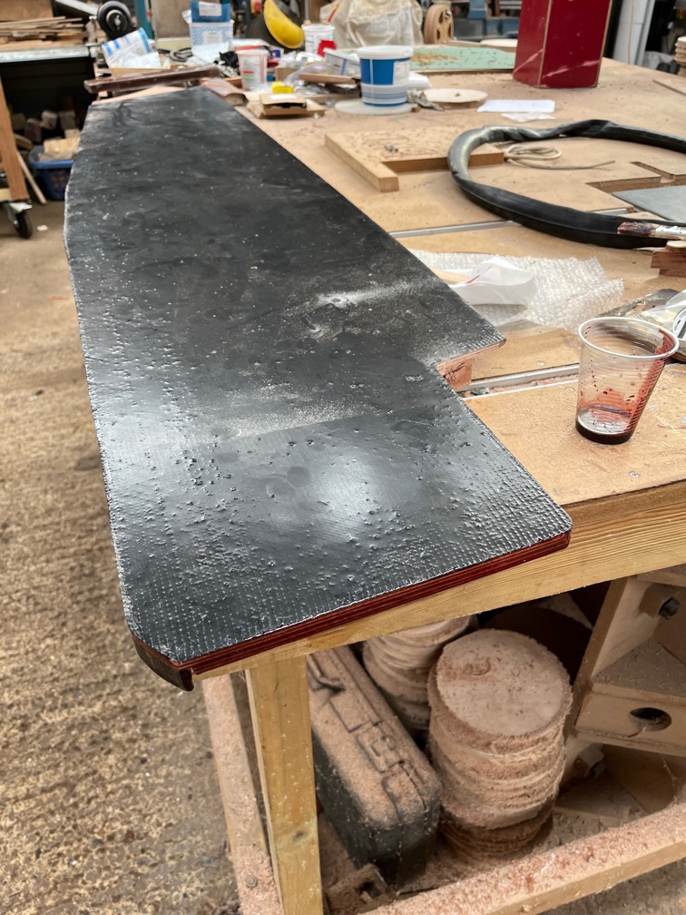 Today was going to be a little bitty since the epoxy and glue work that needed doing meant that other tasks had to wait until the epoxy set cured and the glue dried properly. The varnish work was completed before breakfast. Later I made a start on glueing things.
