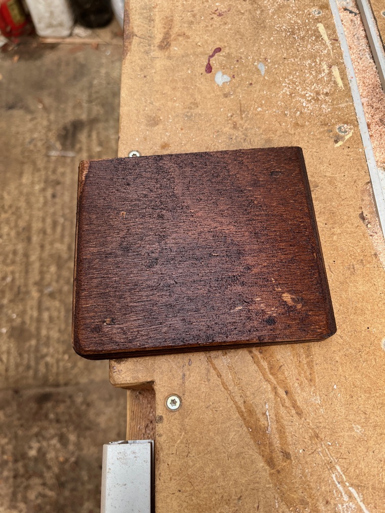 Next up were the case sides. The adjustments that were made during the dry fit meant that unsealed plywood edges were exposed and these all had to be coated with neat epoxy.