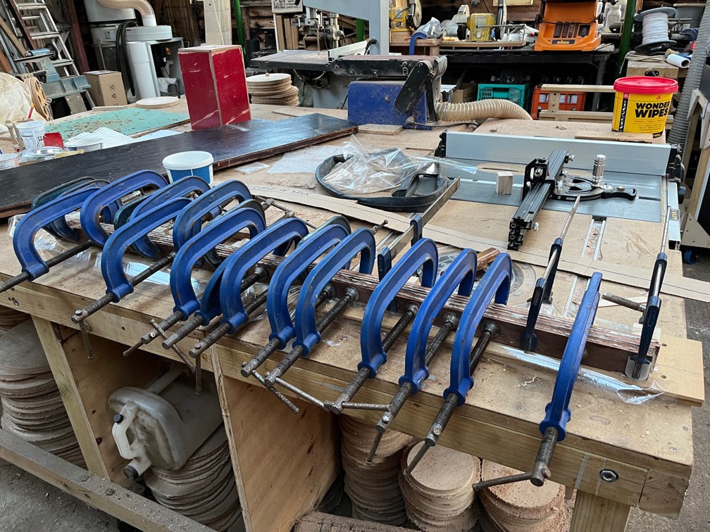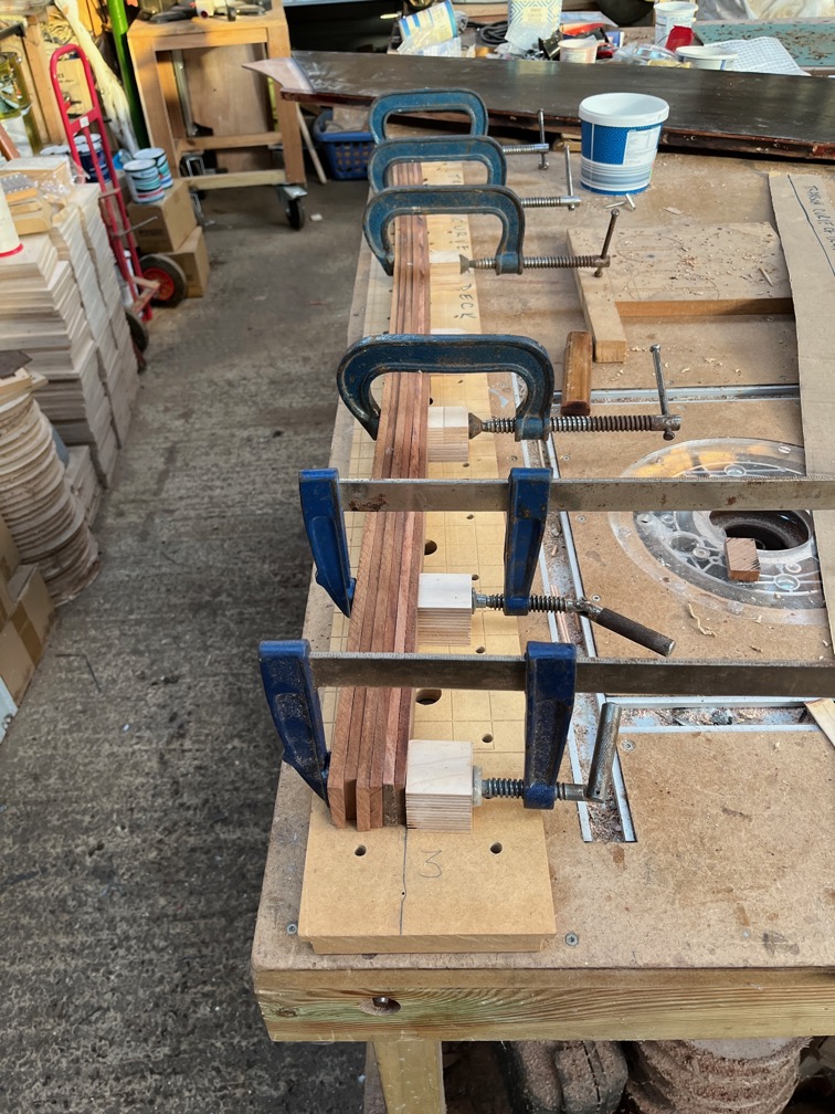 One more glue up was required and that is the above which will form the missing top of the centerplate case as I did not have a single piece the correct size.