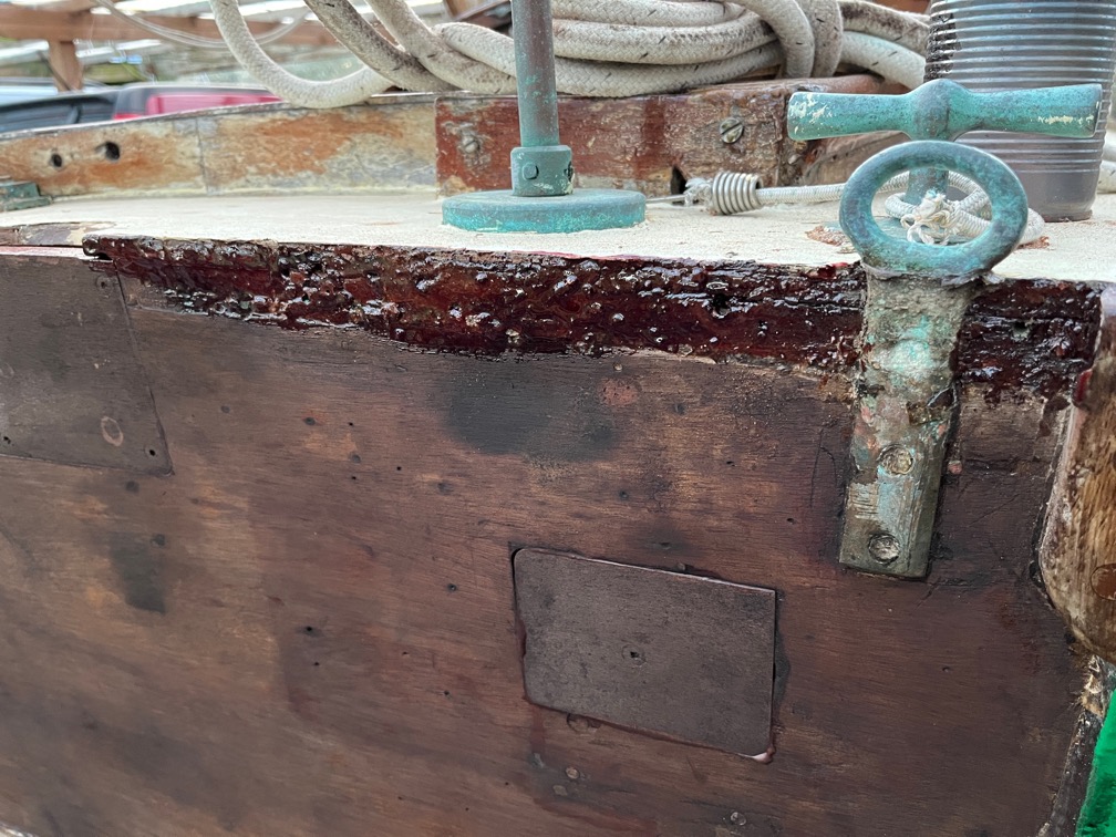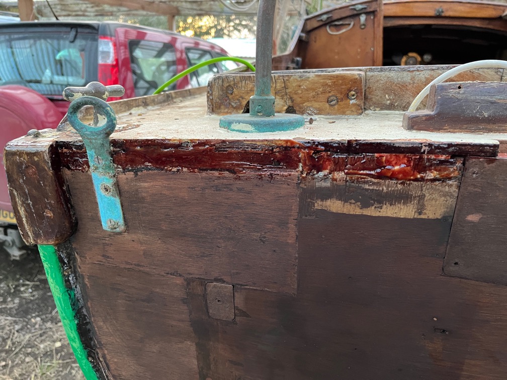 Since I was in a hurry I didn’t clean these areas up first, just slapped on the rapidly curing epoxy. If it subsequently falls off when I’m fitting the new rubbing strake, then I’ll just clean up the area and put more fresh on.