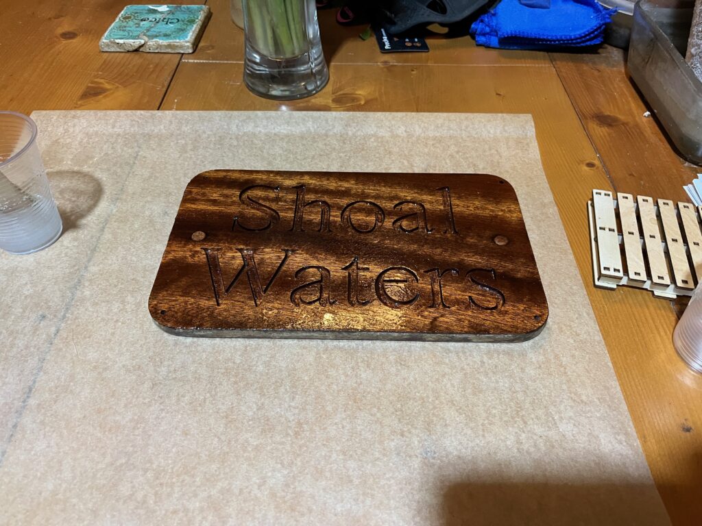 Have had a break I started on the Shoal Waters name plate.