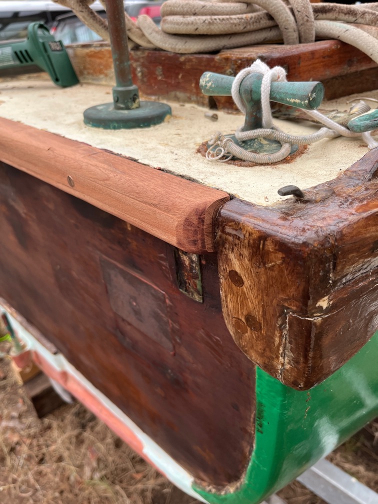 This part of Shoal Waters has been waiting for the next batch of penetrating epoxy to be mixed and this got a liberal flooding as well. Again, this is a repair for another maintenance season, but for now, the penetrating epoxy will do the trick.