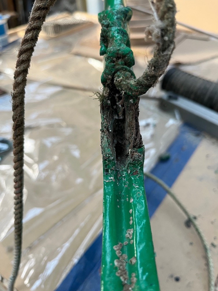 This is how the chafe protection for the uphaul looks, albeit with the copper nails.