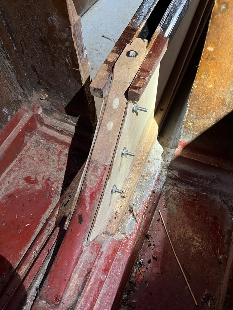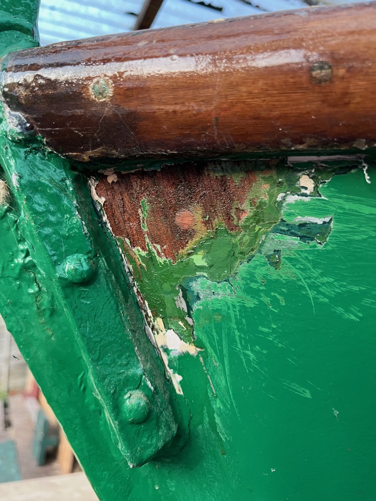 I used a small chisel to dig out the soft wood as far as I could, really this is a project for next season and to be done properly, the rotten section needs to be removed and replace. But not this time.
