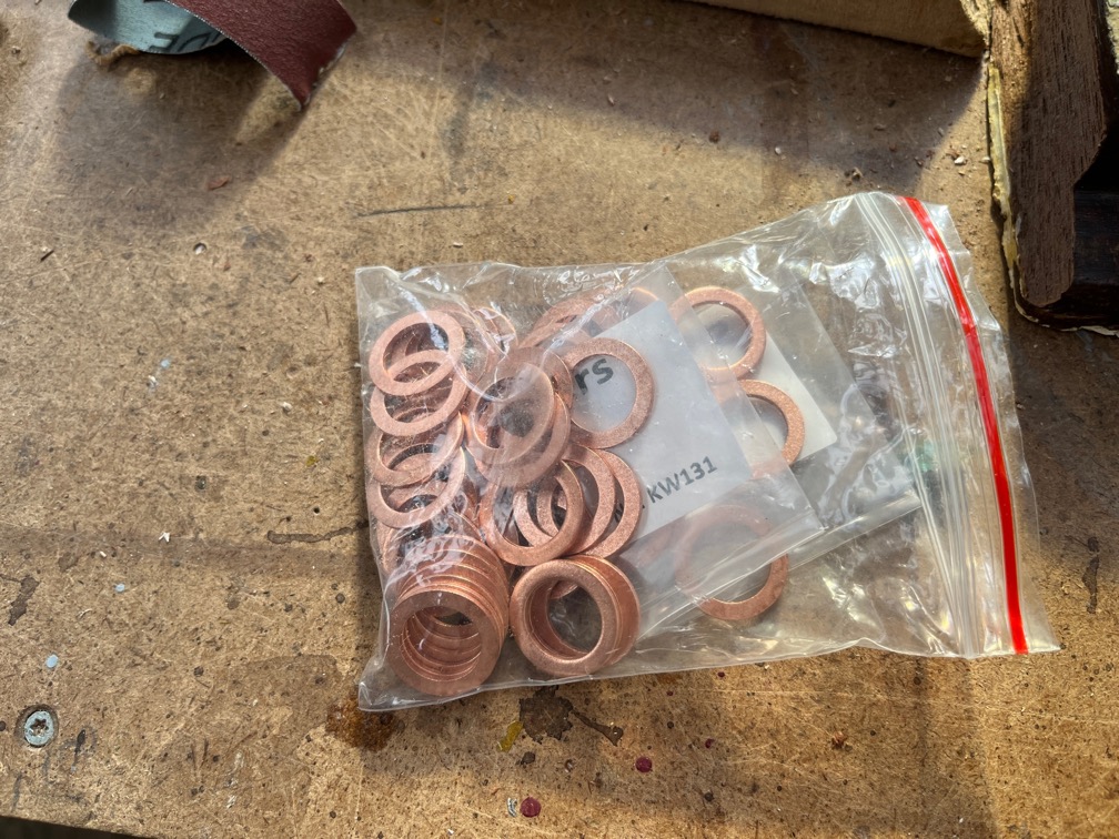 These arrived yesterday, the copper washers for the rudder fittings.