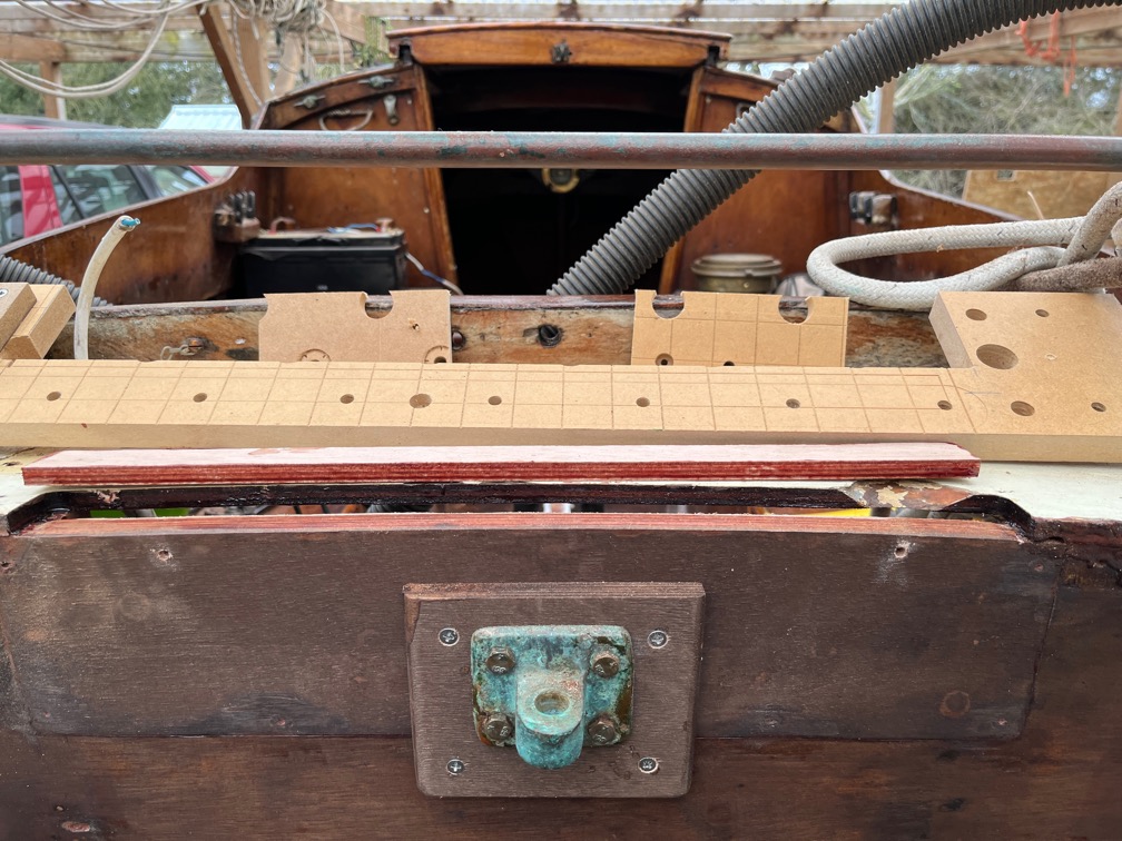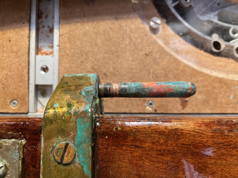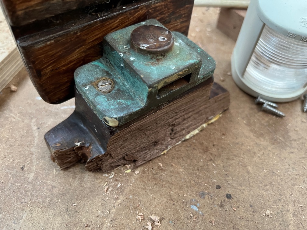 This is the reason for the replacement, the old one had to be broken off as the screw head disintegrated as it was originally brass. Unfortunate as there was nothing wrong with the mount itself, but I needed it out of the way in order to cut the aft deck back with the router.