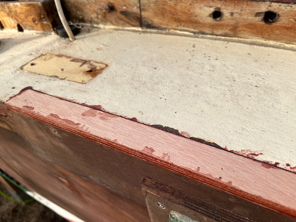 I had quite a lot of epoxy left over after filling the holes, so I taped up the aft deck and used some of it to fill in the gaps here. I noticed whilst doing this that the epoxy still left in the pot was getting very hot indicating that it had already kicked off. Hopefully that will mean that the epoxy work I’ve just done will cure quickly as well.