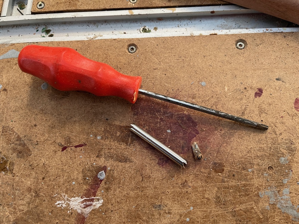 It doesn’t take long, just a few seconds, to drill out a core of wood in which the broken screw remains.