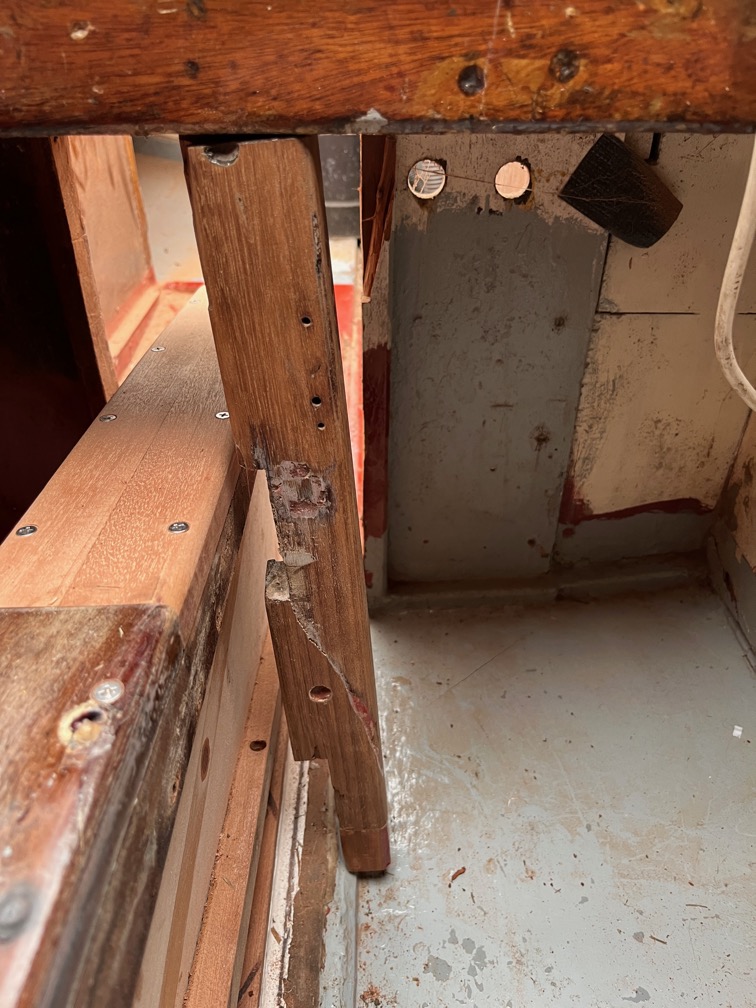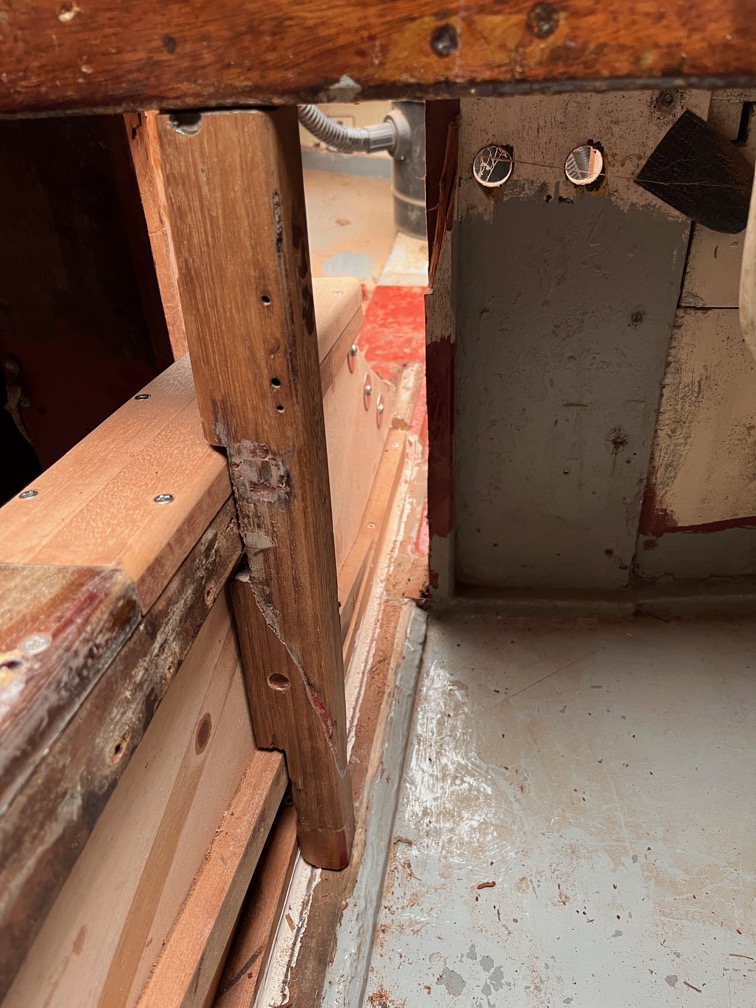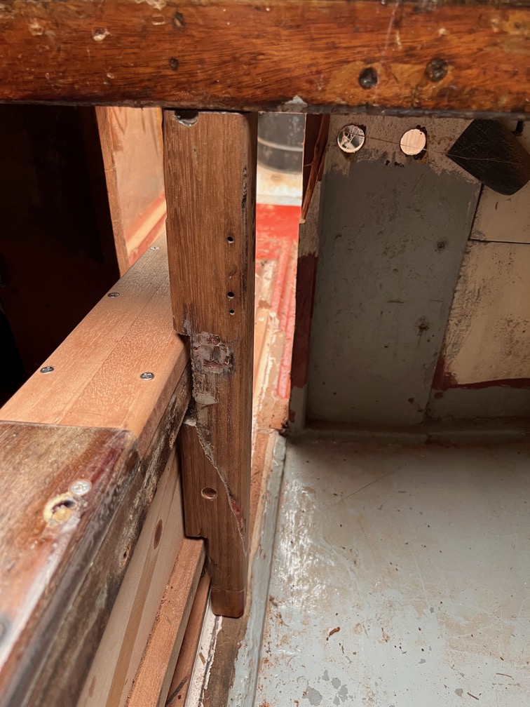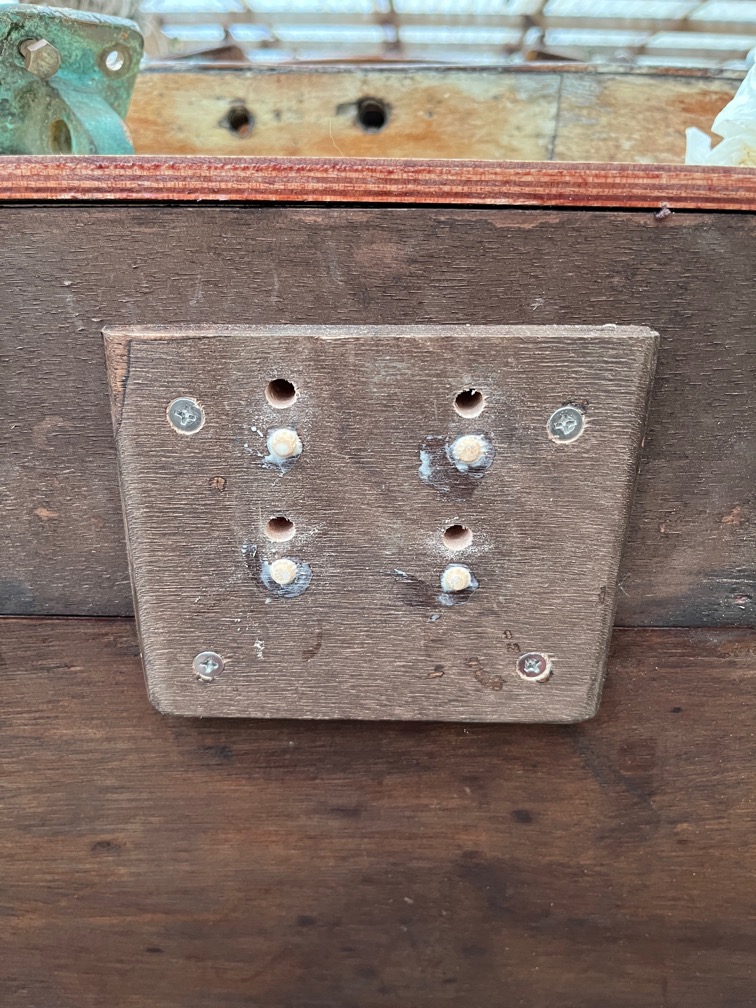 I raised the gudgeon fitting up a little and then needed to plug the old holes. Which is what you can see here.