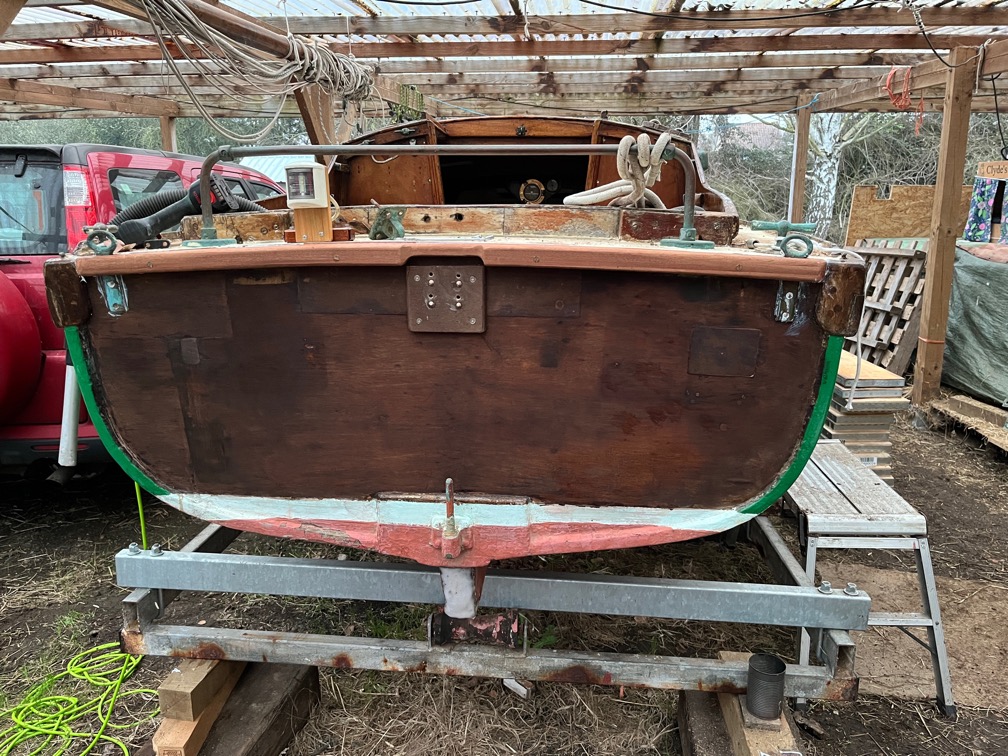 The transom eyes and the rubbing strake were also fitted. The excess sealant you can see will be cleaned off with a chisel once it has dried.