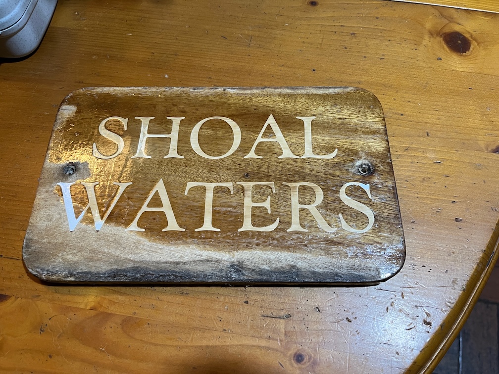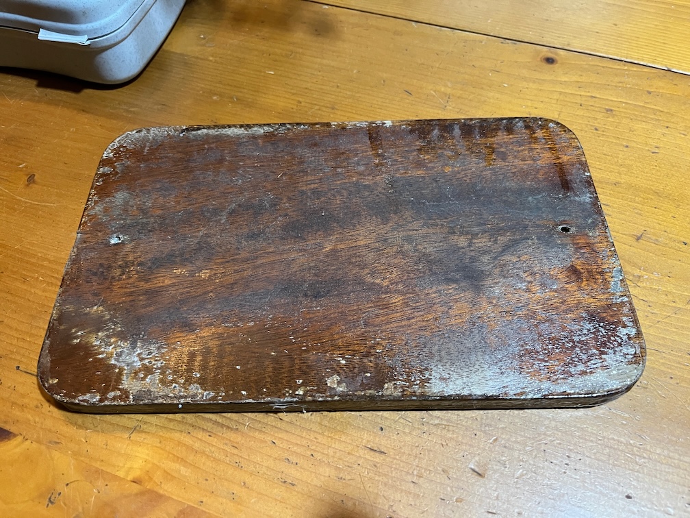 So, to carve the name I had to first un-warp the board. It’s currently resting on the Rayburn, varnish side up and is starting to get flatter.
